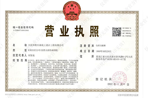 10月26日在大慶開發(fā)區(qū)注冊大慶華凱石油化工設計工程有限公司;