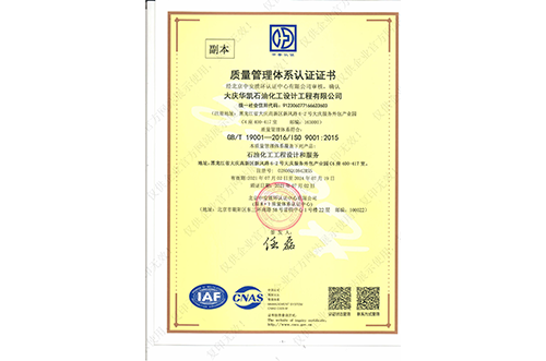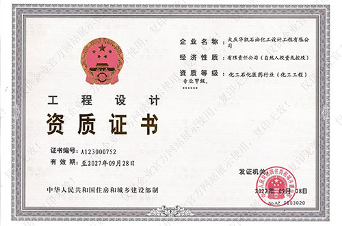 我公司具有化工工程專業(yè)甲級,石油及化工產(chǎn)品儲運、煉油工程、管道輸送、油田地面、制漿造紙工藝、城鎮(zhèn)燃氣工程、建筑工程乙級設計資質(zhì),石化、建筑乙級咨詢資質(zhì),并通過了ISO9001質(zhì)量管理體系的認證、環(huán)境管理體系認證和職業(yè)健康安全管理體系認證,具有Ⅰ、Ⅱ、Ⅲ類壓力容器設計資格證及壓力管道設計資格證。